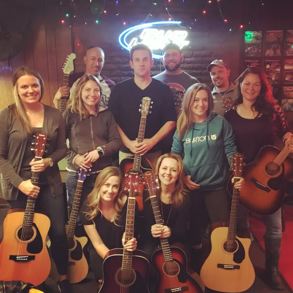 We are a one-of-a-kind happy hour group guitar class that meets weekly at one of our 6 Denver locations near you. Learn how to play guitar in a fun and laid back environment and meet a few new friends along the way.